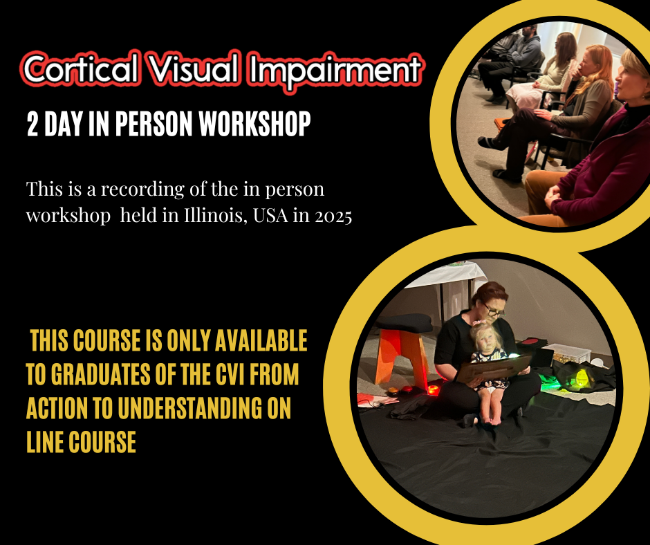 This 2 day in-person workshop was held for graduates of the CVI from Understanding to Action group of 2025. It was held in Illinois, USA in October 2025 and this is the exclusive recording of the workshop. Each day concentrated on a different case study. The Parent Interview and Home Observation videos are shared and then Hands-on Sessions followed by a Q & A opportunity. This workshop is your opportunity to witness transforming theory into practical strategies. Once enrolled you will have access for 120 days